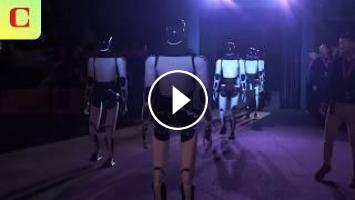 Tesla's Elon Musk shows latest Tesla Optimus Robot dancing at the 'We, Robot' event.